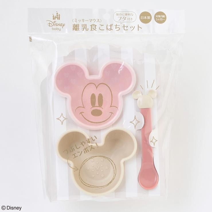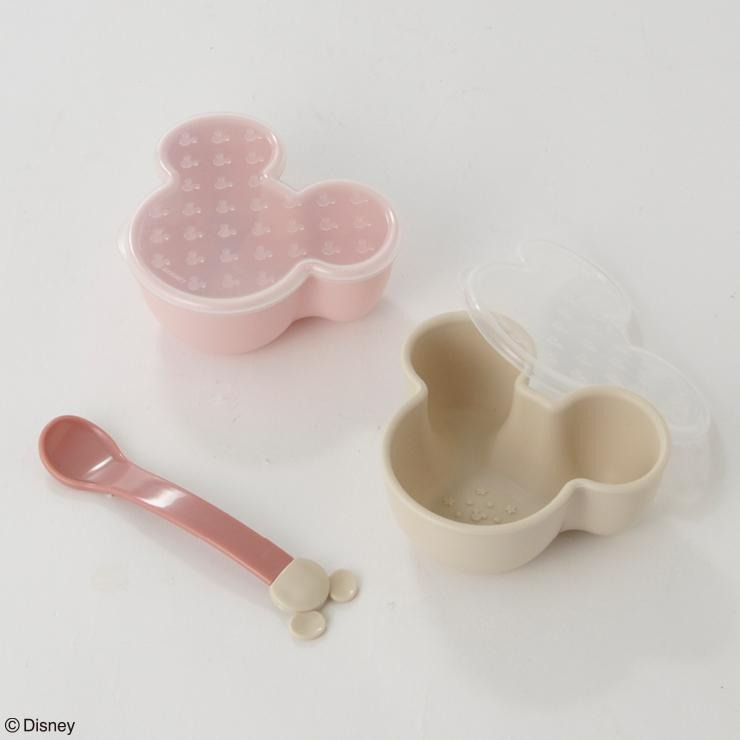 ミッキー型のフタ付きこばちとスプーンのセット。