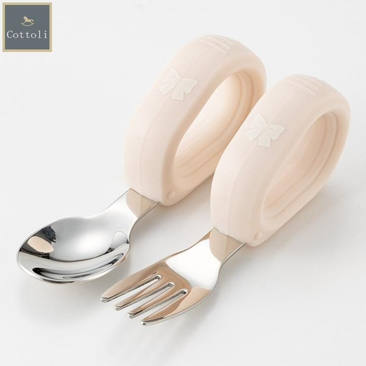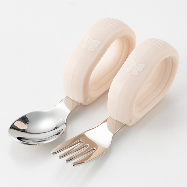 持ち手がシリコーン製のスプーンとフォークのセット。