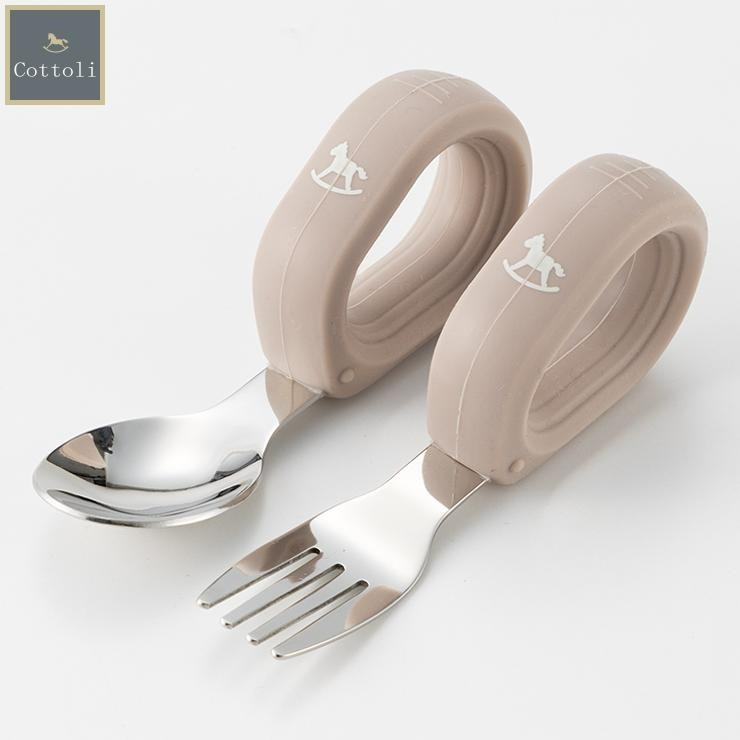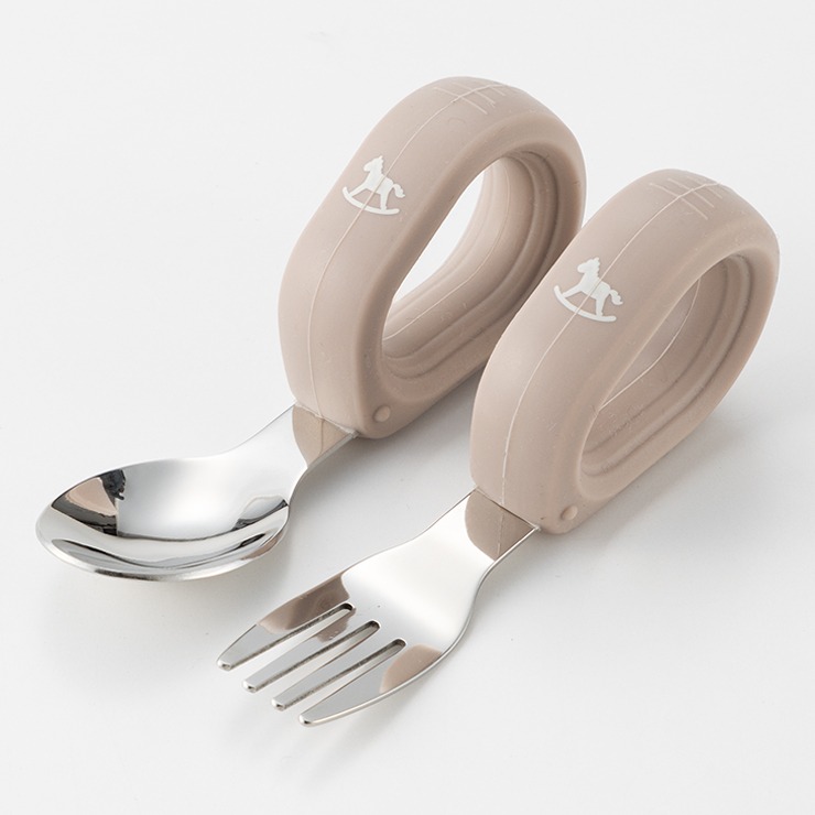 持ち手がシリコーン製のスプーンとフォークのセット。