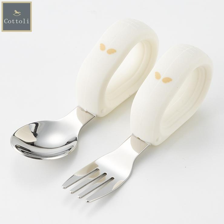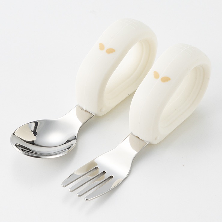 持ち手がシリコーン製のスプーンとフォークのセット。