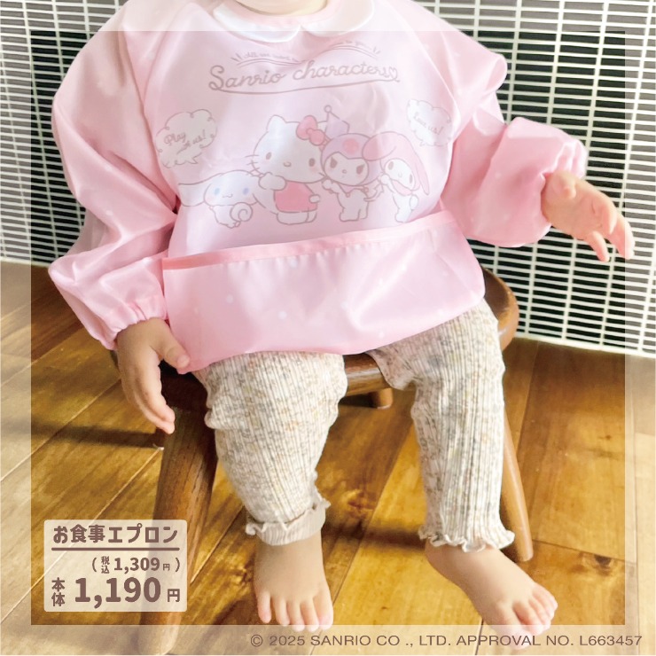袖口にゴムが入った長袖タイプのお食事エプロンです。