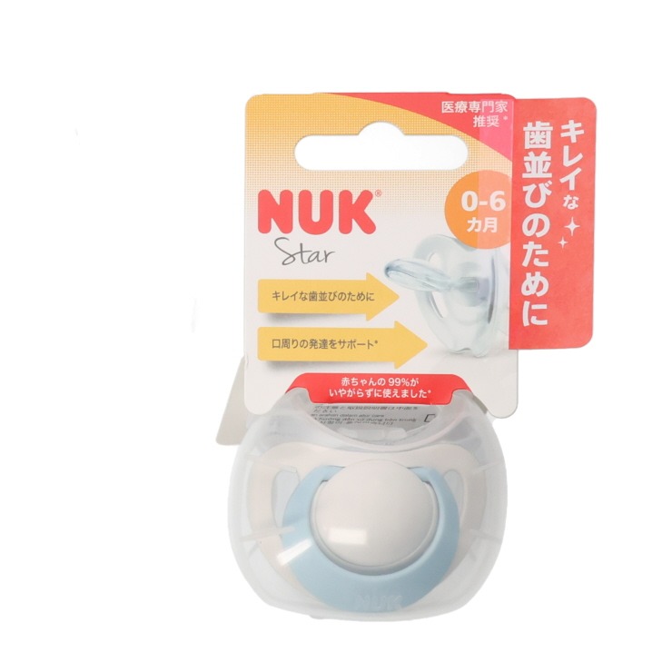 授乳時の乳首にそっくりで、上あごにぴったりフィットするヌークのおしゃぶり。