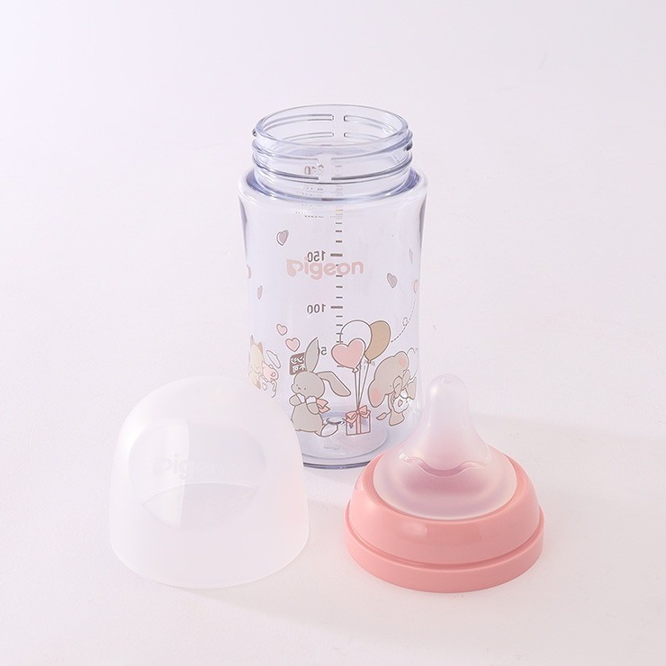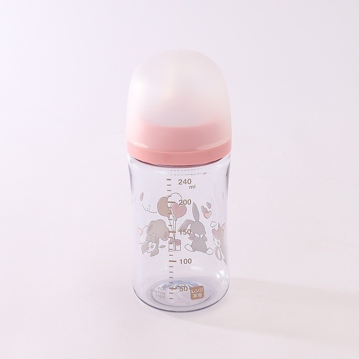 ボトルはガラスのような透明感の新素材T-Ester(ティーエスター)を採用した「母乳実感」ほ乳びん。