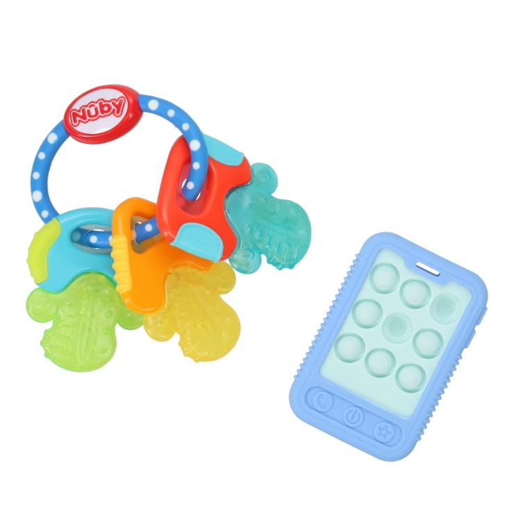・表面が柔らかい素材でできており、乳児のデリケートな歯茎から歯が生えてくるのを助けます。また、歯茎の痛みを和らげるために冷たく弾力のある「キー」の下部が安全に刺激を与えます。