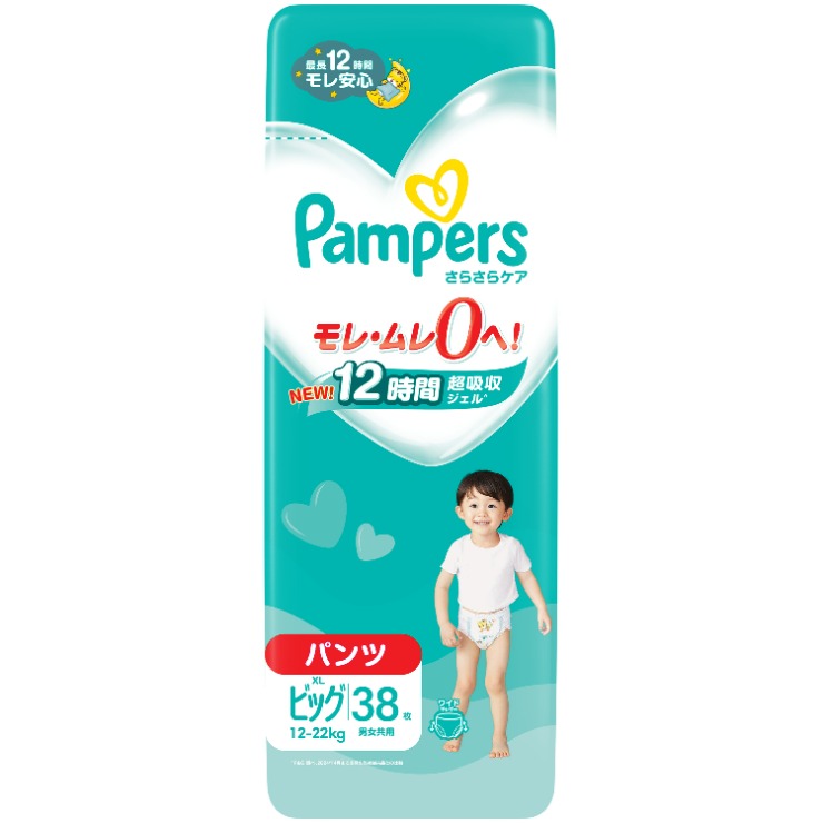 ■パンパースパンツの上手なはき方 (ご使用前に必ずお読みください。) 「たっち」のとき 1 「Pampers」とパンパースのロゴが書いてある方が、前です。赤ちゃんにつかまり立ちをさせてください。2 オムツの足ぐりから片手を通し赤ちゃんの足を持って片方ずつオムツに通します。3 オムツを上まで引き上げ、ウェスト・足回りを整えます。「たっちしていない」とき 1 「Pampers」とパンパースのロゴが書いてある方が、前です。2 オムツの足ぐりから手を通し、赤ちゃんの足を持ってオムツに通します。3 赤ちゃんの動きにあわせてオムツを引き上げてください。じっとしているときは、お尻を持ち上げてください。チェックポイント 内側のギャザー ・ くい込んでいない ・ 外側のギャザーよりはみ出していない ・ 立っている 外側のギャザー・ 内側におり込まれていない 上記の他にも、赤ちゃんにあわせていろいろなはかせ方ができます。パンパースパンツのオムツ替えのコツ (ご使用前に必ずお読みください。) 「うんち」のとき サイドをやぶれば、簡単に脱がすことができます。手を汚さず、オムツ替えができます。「すてる」とき 汚れた部分を内側にして丸めてテープで止めてください。 後処理が簡単にできます。