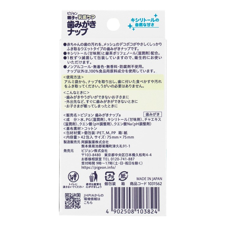 赤ちゃんの歯の汚れを、デコボコメッシュでやさしくしっかりふき取るウエットタイプの歯みがきナップです。