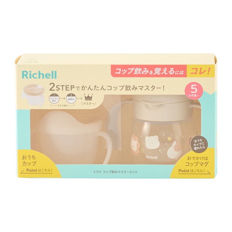 おうちでコップ飲みの練習ができるカップと、おでかけ時にも使用できるコップマグのセットです。
