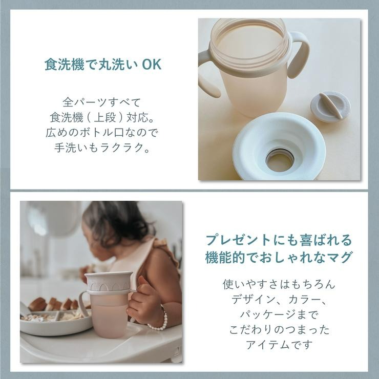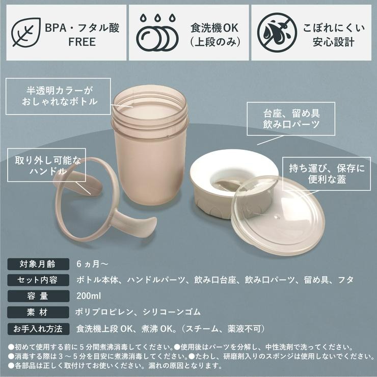 ●漏れ防止構造:吸った時だけ飲み物が出るシールフタで、こぼれにくくなっています。吸う力により飲む量を調整できるので、コップ飲み練習に最適です。