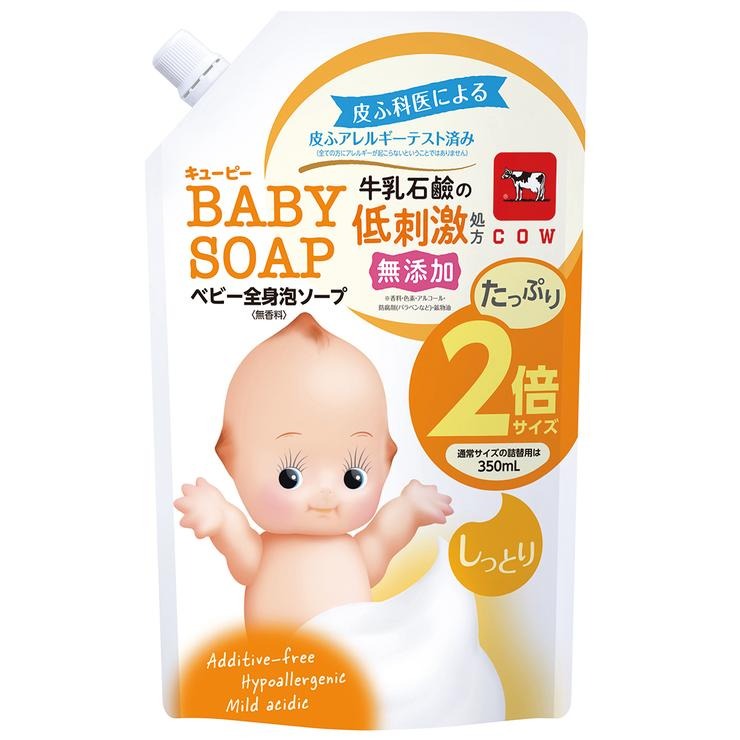【生まれてすぐから 牛乳石鹸の無添加&低刺激処方】ふんわりキメ細かな泡で、赤ちゃんのデリケートなお肌のうるおいを守りながら汗や汚れを洗い流します。すすぎラクラク、泡切れすっきり。お得な詰替2回分。無香料。保湿成分:ヒアルロン酸配合のしっとりタイプ。