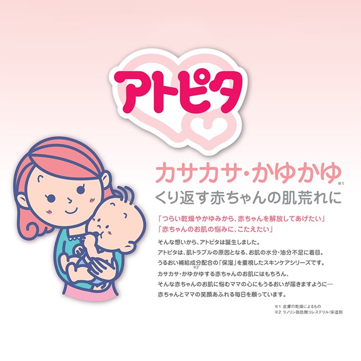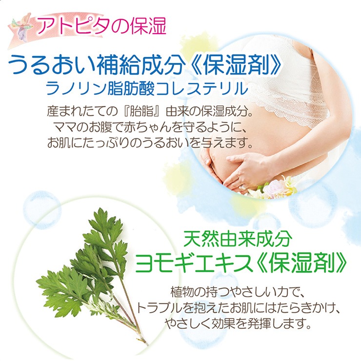 アトピタはうるおい補給成分「ラノリン脂肪酸コレステリル(保湿剤)」配合。