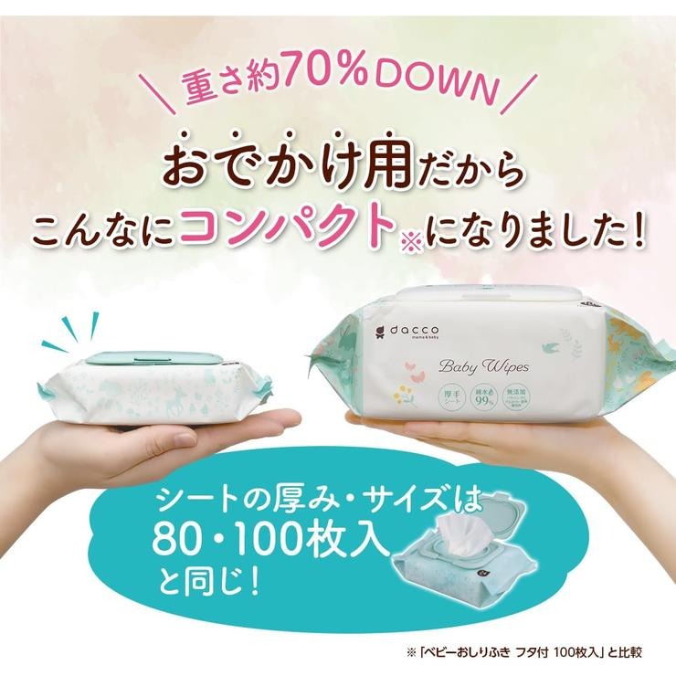 ・厚手で大きいシートに純水99%をたっぷり含んでいるため、やさしくしっかり拭き取れます。