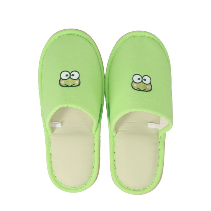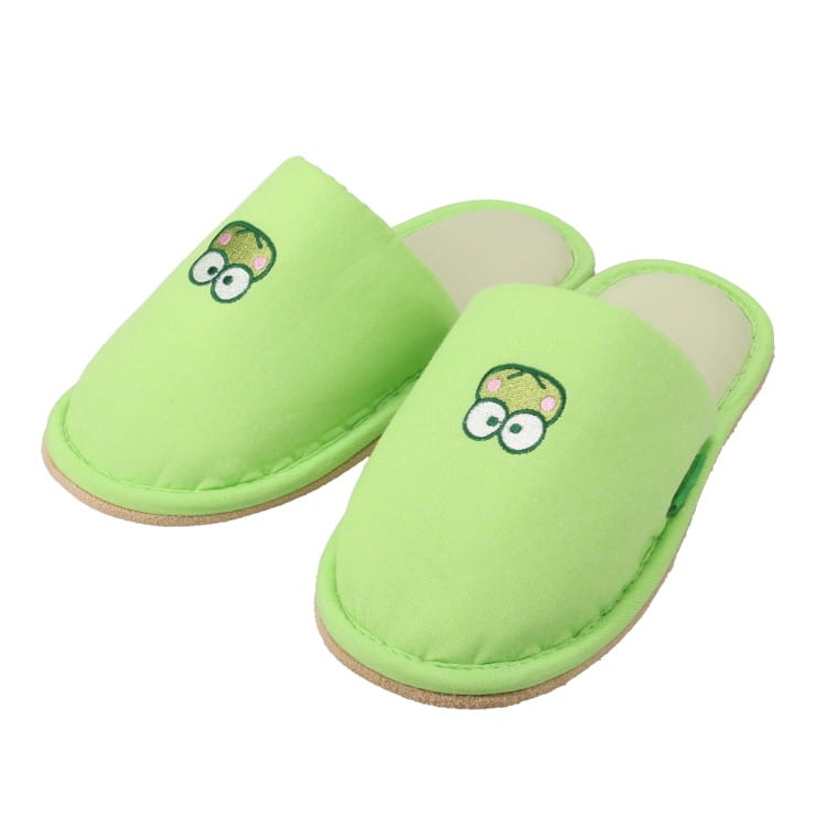 人気のけろけろけろっぴデザインでワンポイント刺しゅうスリッパが登場!