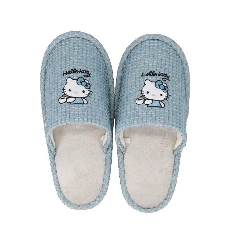 ティーカップを持ったキティの刺しゅうがおとなかわいい♪