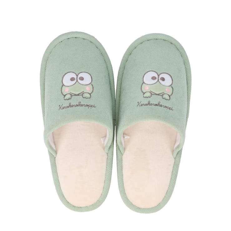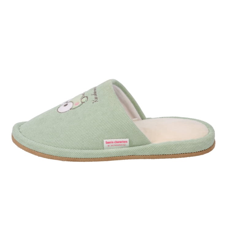 ミントグリーンとけろっぴがマッチしているかわいいスリッパです。