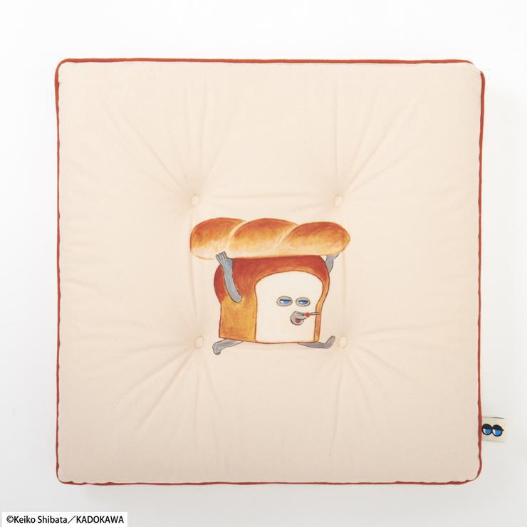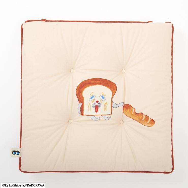 表と裏にそれぞれ表情の違う「パンどろぼう」がプリントされたシートクッションです。