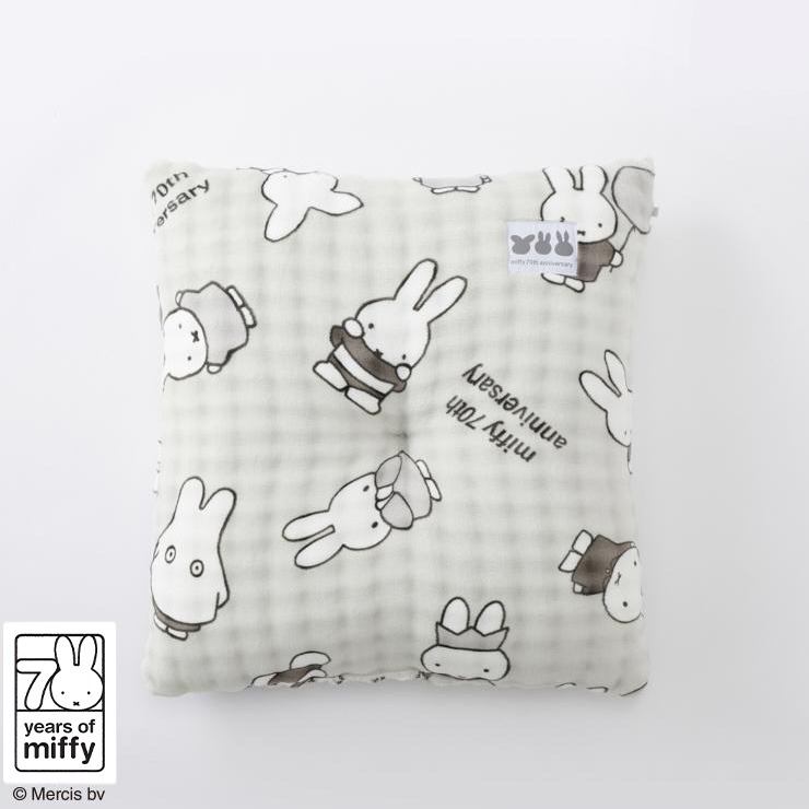 ミッフィー誕生70周年の限定デザインが施された座布団です。