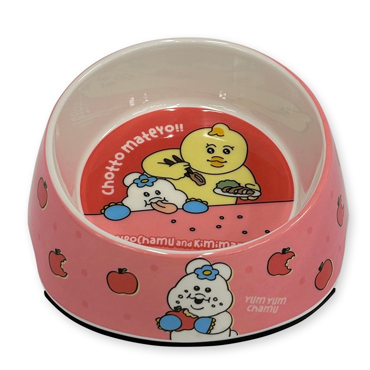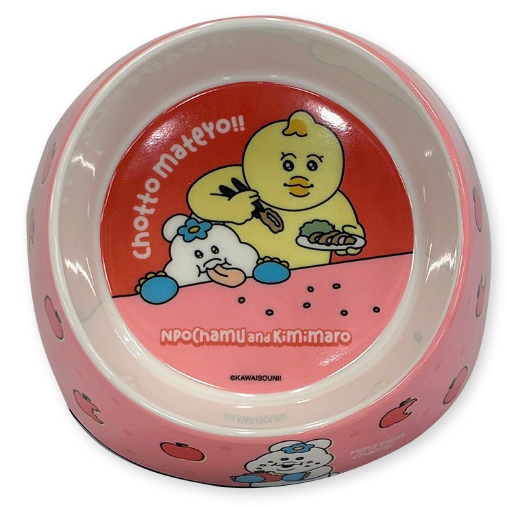 「んぽちゃむときみまろ」の絵柄がかわいい「ペットフードボウル」です。