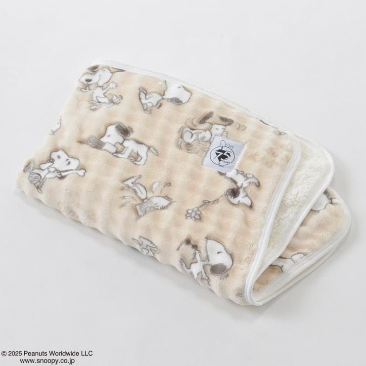 スヌーピーのデザインを施したひざ掛け毛布です。