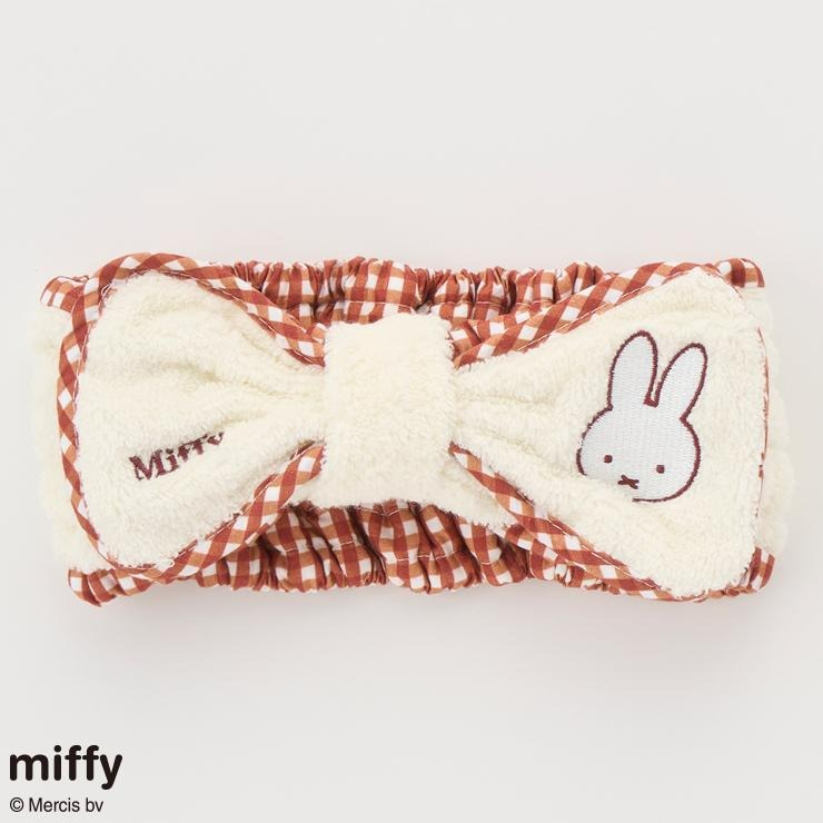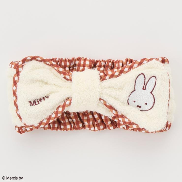リボンの上にミッフィーがデザインされた赤チェックのヘアバンドです。