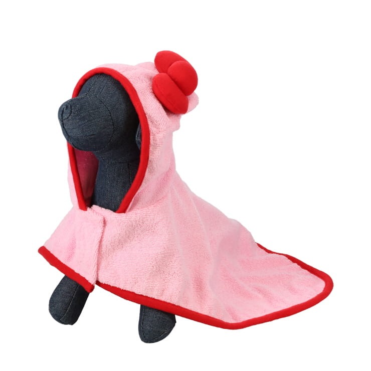 フードを被ればキャラになりきれちゃう、ペット用のバスローブです。