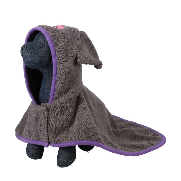 フードを被ればキャラになりきれちゃう、ペット用のバスローブです。