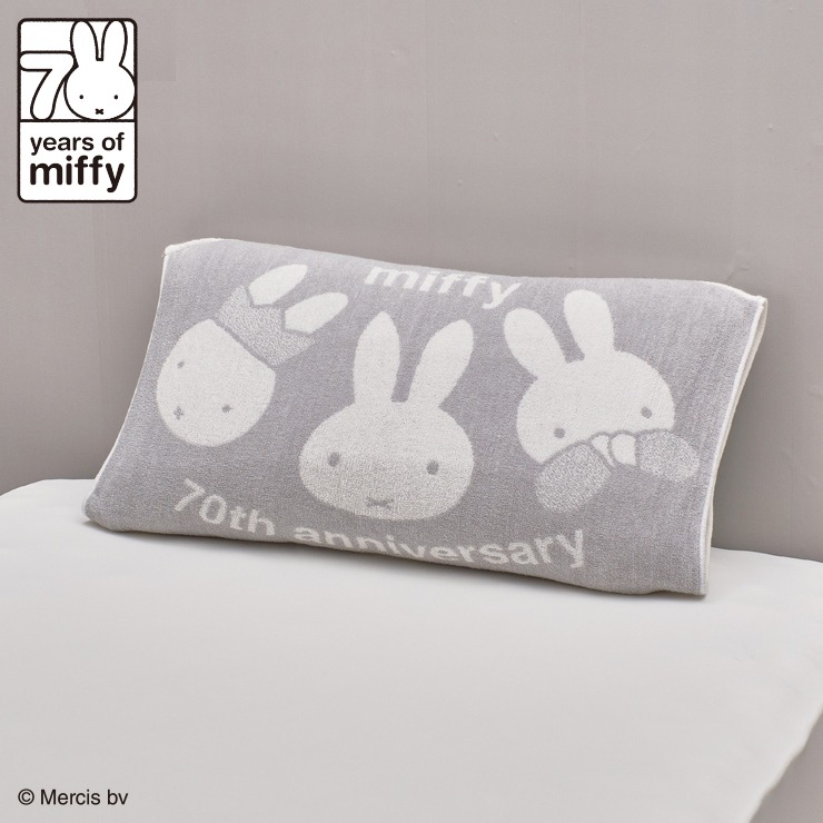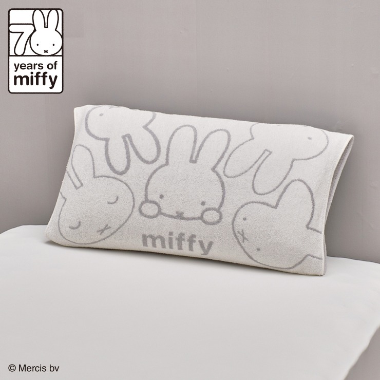 ミッフィーのデザインが施されたタオル地の枕カバーです。