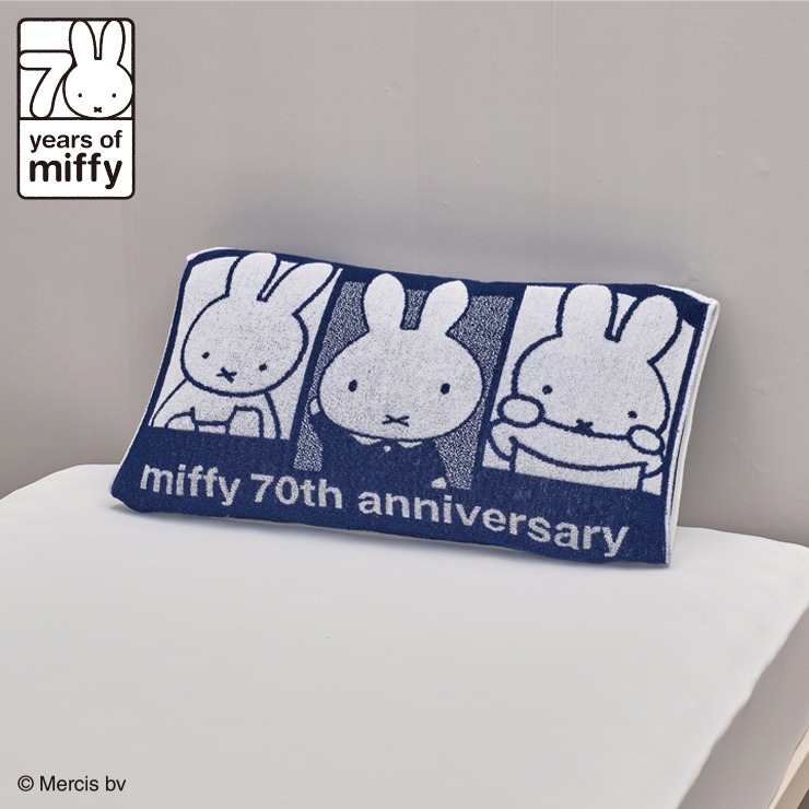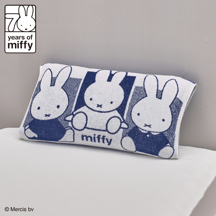 ミッフィーのデザインが施されたタオル地の枕カバーです。