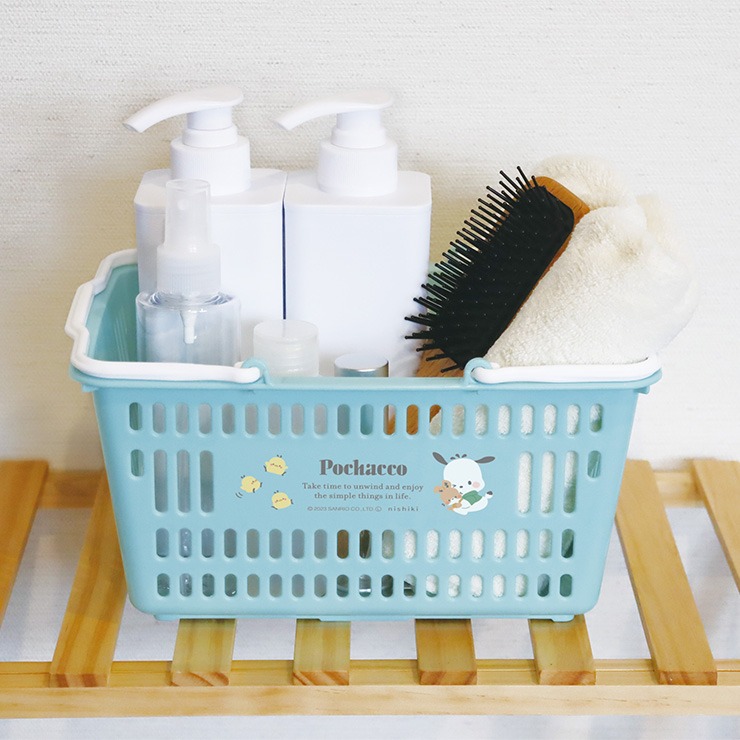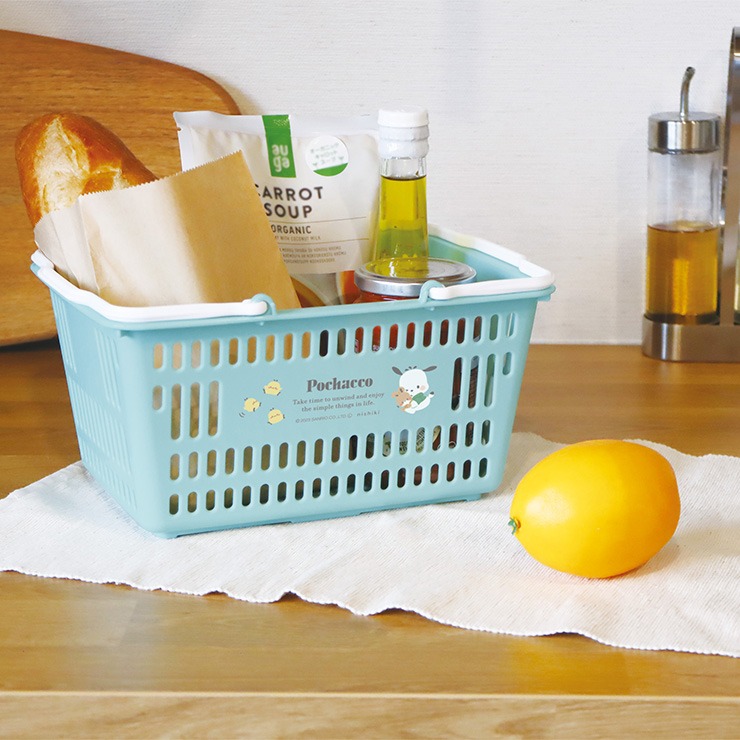 280mlのペットボトルが6本入る大きさのバスケットです。お菓子やドリンクを入れてちょっとしたお出かけに。または収納BOXとして食品ストッカーやおもちゃの収納など様々な用途でご使用いただけます。バスケットは抜き穴が多くて通気性バツグン。ジムや温泉用にタオルとシャンプーを入れるスパバッグとしてもおすすめです。プラスチック製なので汚れてもサッと拭き取るだけでOK。お手入れ簡単です。