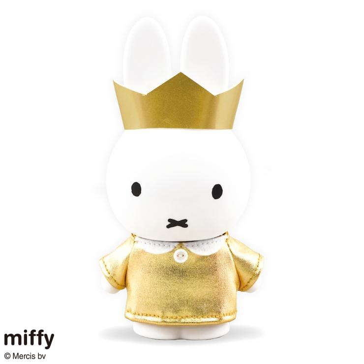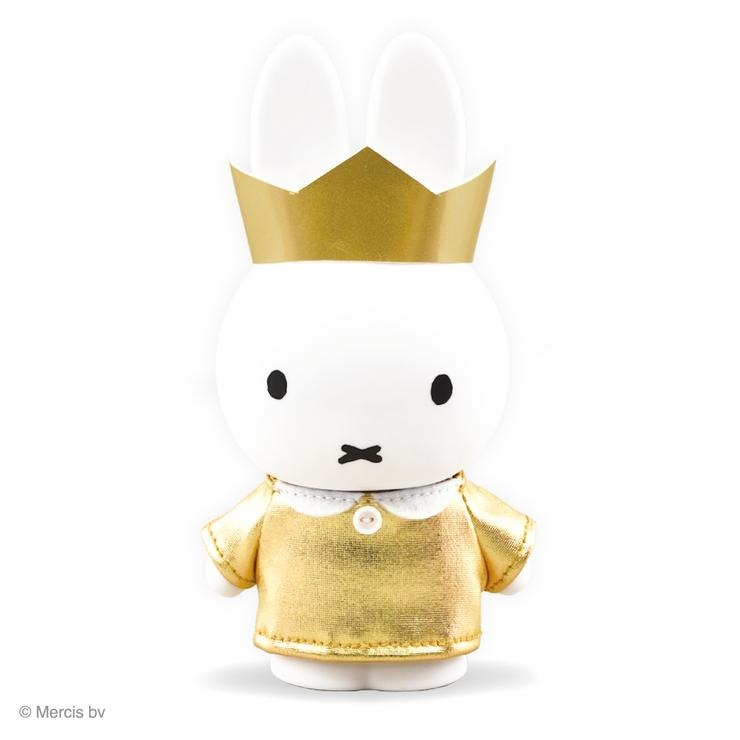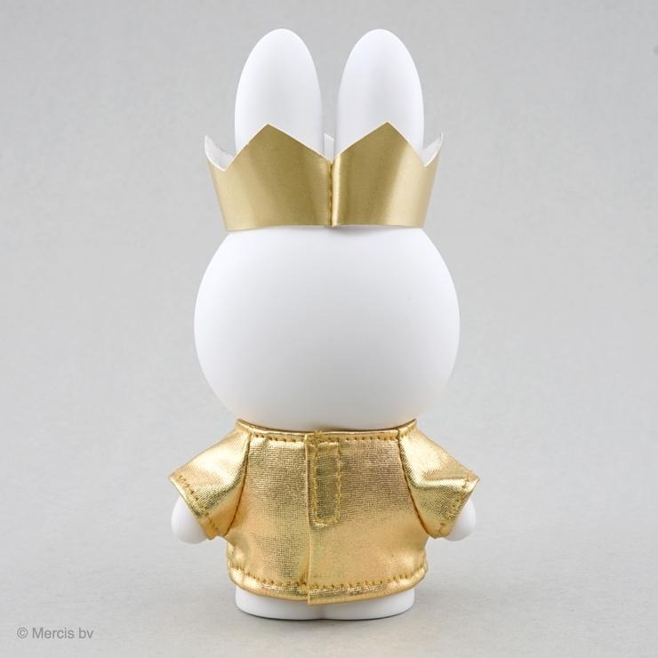 全高約 17cm、手のひらサイズのミッフィーが、金色の王冠とお洋服を着て登場。