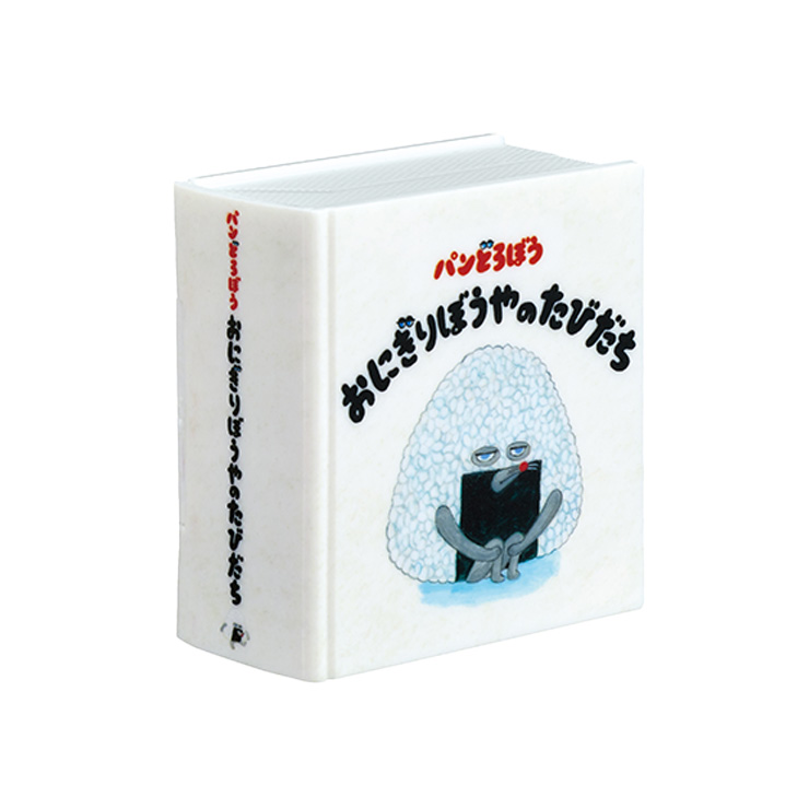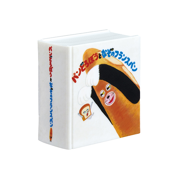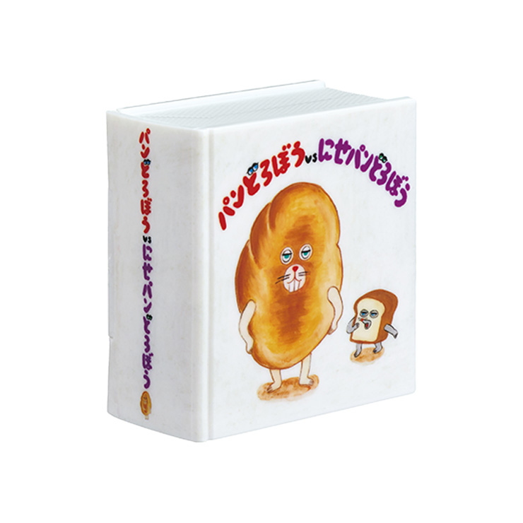 パンどろぼうがえほんのせかいからとびだしたような、本型ケースとキャラクターのフィギュアです。本物の絵本と見比べてみてね!