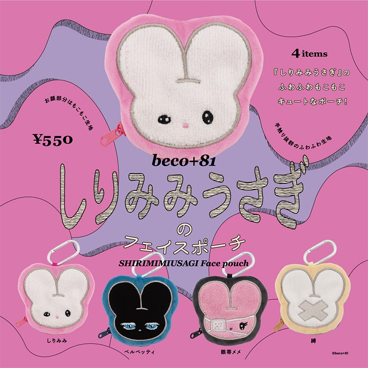 大人気イラストレーターbeco+81氏の『しりみみうさぎ』がふわふわもこもこのキュートなポーチになりました!