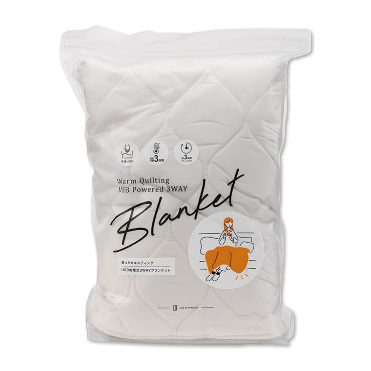 キルティング USB給電式3WAYブランケット 135×80×2cm