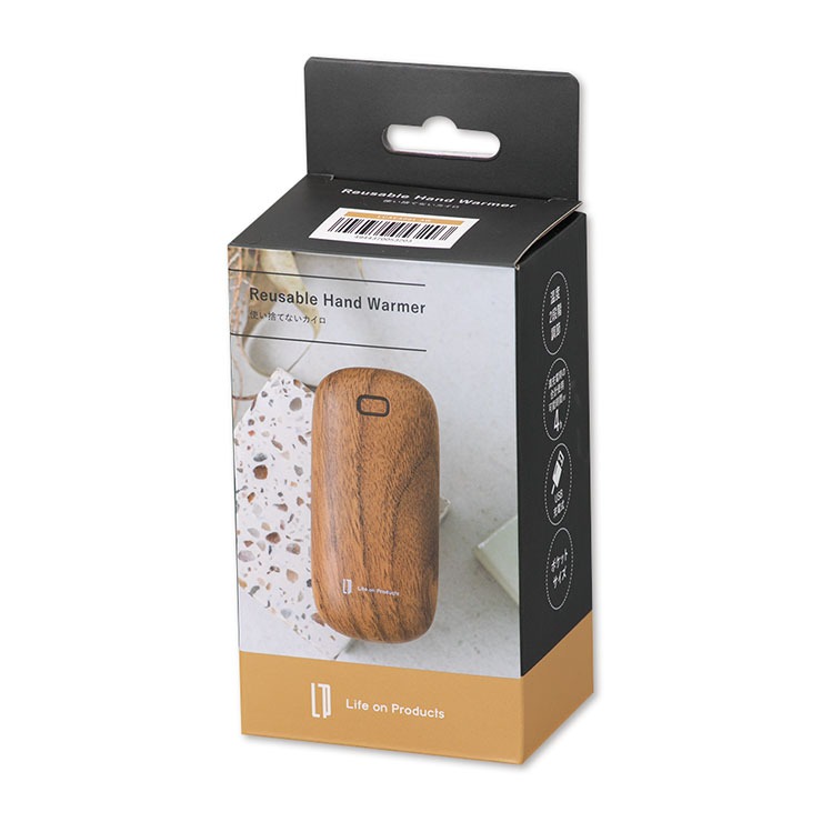 繰り返し使えて環境とお財布に優しいエコなカイロ。スイッチを入れてからぬくもりを感じるまで僅か数秒。必要な時にスイッチを入れて「寒い」その時にすぐご使用いただけ、不要な時にはOFFでシーンに合わせてご使用いただけます。木目調で見た目もほっこり、温かく。