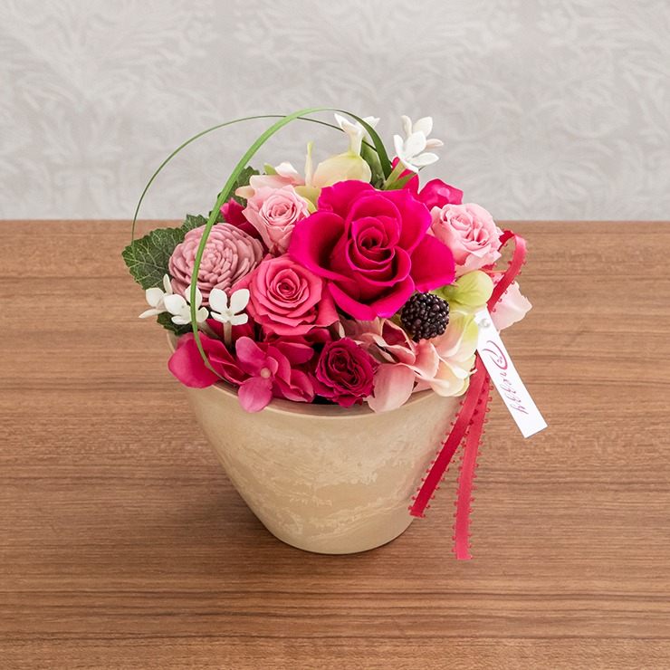 水やりや花粉などのアレルギーの心配も無く、お祝いやお見舞い、インテリアとして楽しむなど様々な用途にご利用いただけます。
