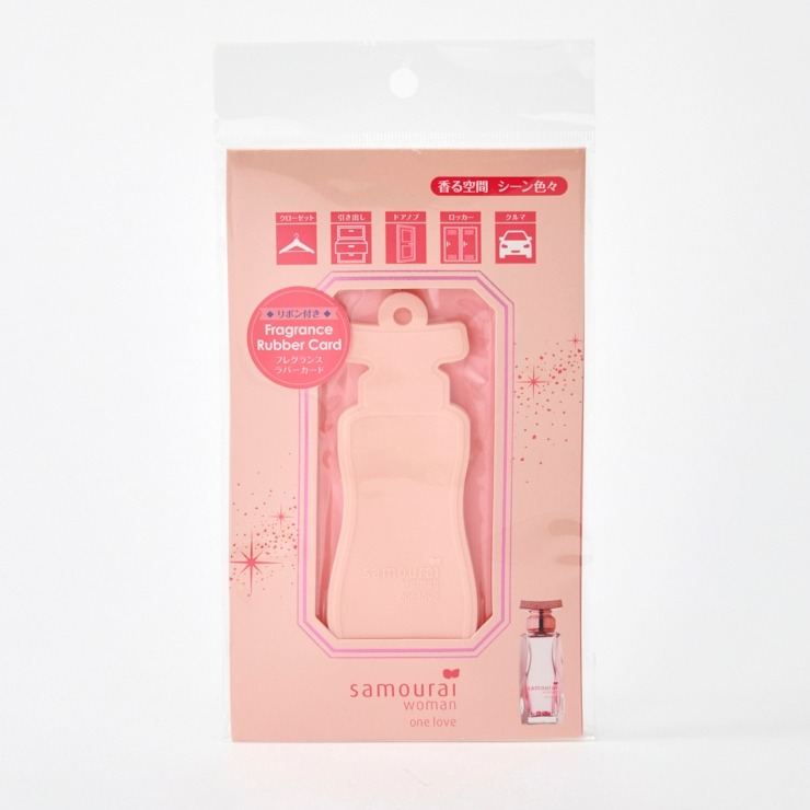 ●カードタイプのお部屋用マルチフレグランスに「サムライウーマン ワンラブ」の香りが登場! ●クローゼット・お部屋・車にも、使い方いろいろ! ●お部屋・オフィス・車・ジムで! 様々なシーンでフレグランスの上質な香りが楽しめる! ●香水瓶を模ったゴム素材を採用。 ●一般的な紙素材に比べ耐久性に優れます。 ●本体の香りが長持ち! 経過と共に使用シーンを変えて長く香りを楽しめる! ※ 本体自体は長くて半年程度香ります。 ※ 環境によって香りの持続時間は異なります。 ※ メーカー調べ ●みずみずしさが広がる、甘さわやかな「サムライウーマン ワンラブ」の香り。