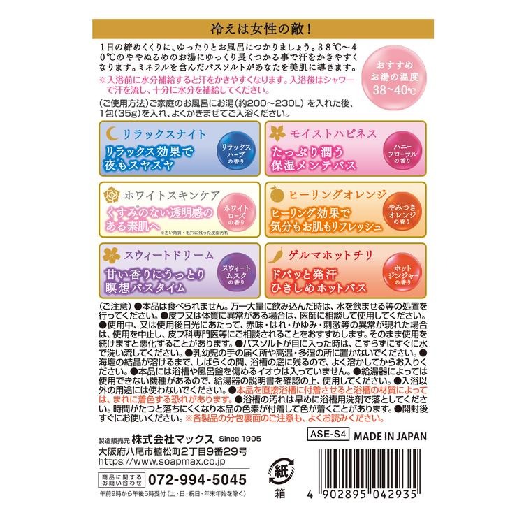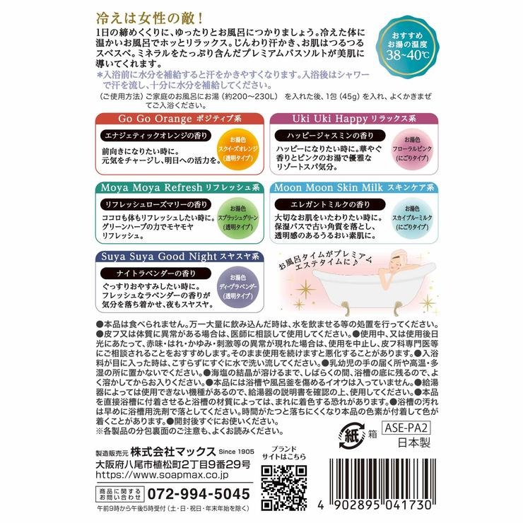 ミネラル(海塩:お肌ひきしめ成分)を含んだバスソルトが美肌に導いてくれます。
