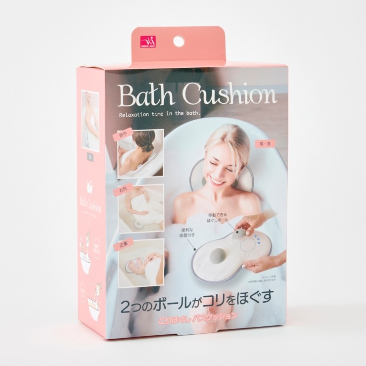 バスクッション背面についた2つの吸盤で浴槽に貼りつけ固定して使用。温浴効果とボール指圧、ダブル効果でコリがほぐれます。またほぐしボールは面ファスナーで簡単に移動ができるから、首や背中、腰、お尻、足など自分でほぐしたい部位に動かして使用ができます。