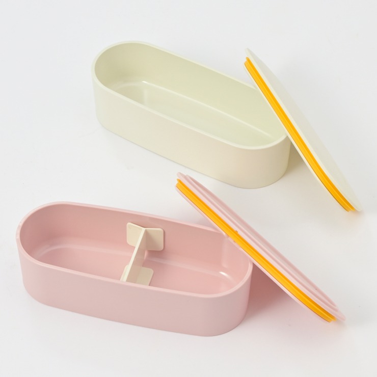 丸みのあるデザインの2段式お弁当箱。内側に角がないので洗いやすい形状。