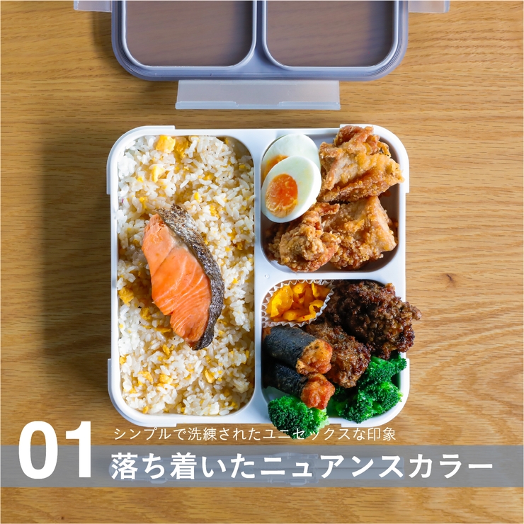 一体型の中仕切りにより、詰めるだけで簡単にお弁当が完成!悩むことなく楽しく盛り付け出来ます。フタを外してレンジ加熱も出来るので、ワンプレートディッシュのように食べられます。
