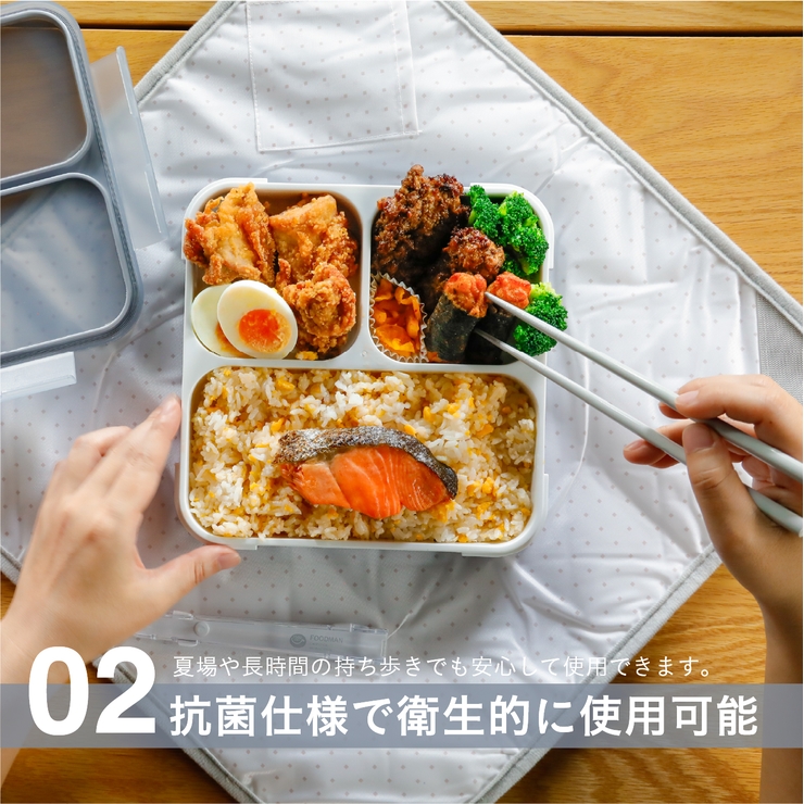 汁漏れしにくく立てて運べる薄型抗菌弁当箱。 お弁当の持ち運びに困っている方にも、フードマンは荷物が入ったバッグにもスッキリ入れられる「立てて運べる薄型弁当箱」。