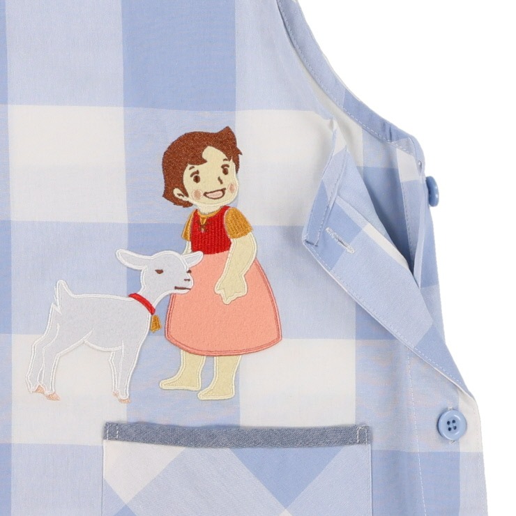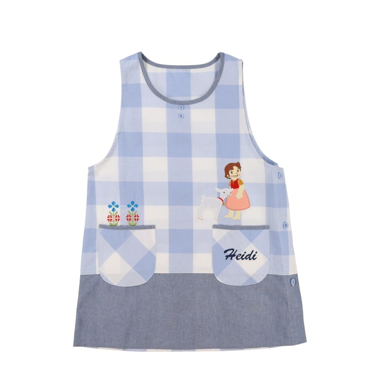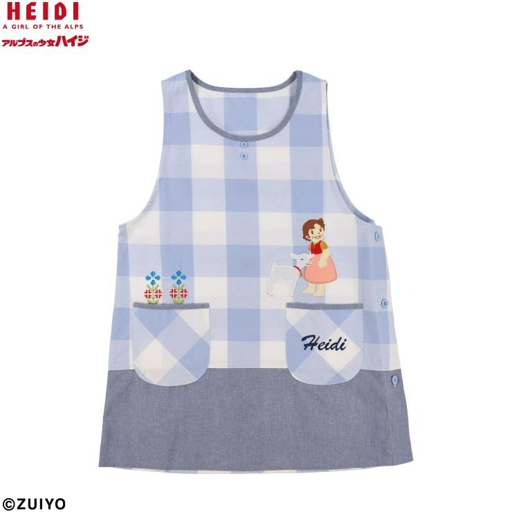ハイジとヤギのユキちゃんのアップリケつきエプロンです。