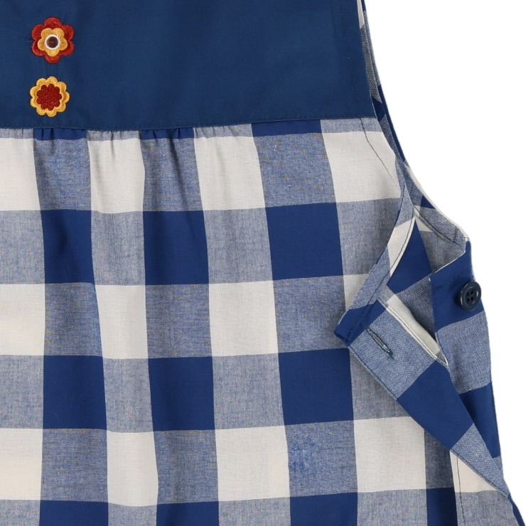 ベーシックなブロックチェックに、モンチッチの顔ポケットがポイントです。