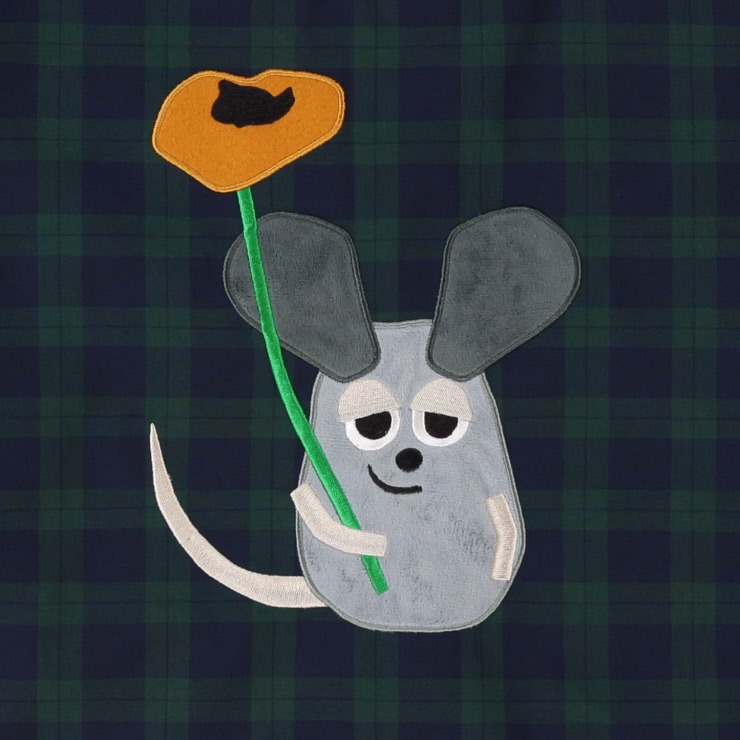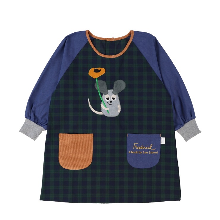 絵本作家レオ.レオニの代表作”フレデリック”のアップリケ割烹着。