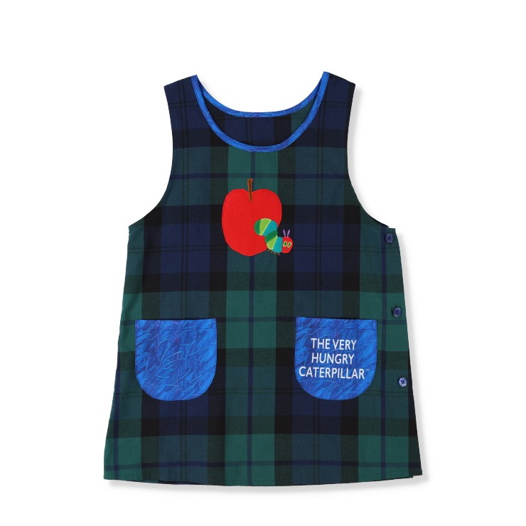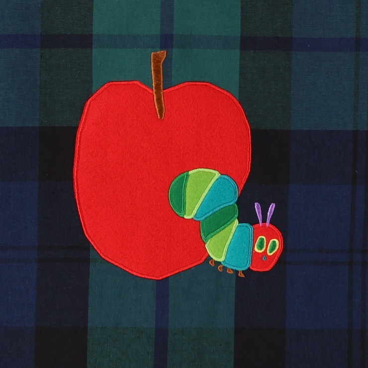 絵本作家エリック.カールの「はらぺこあおむし」のエプロン。