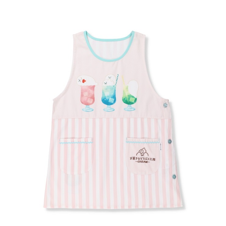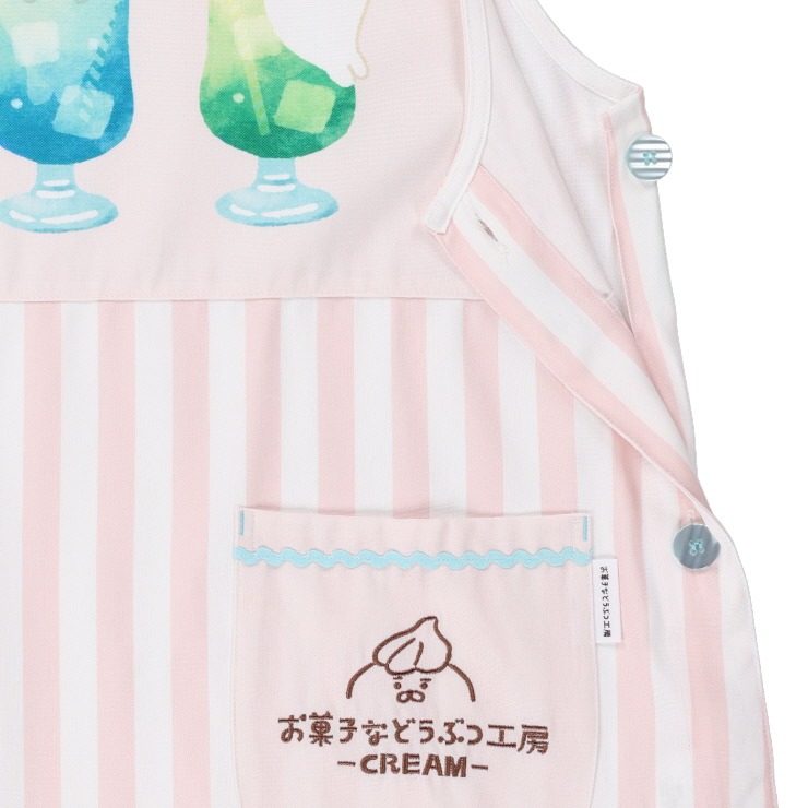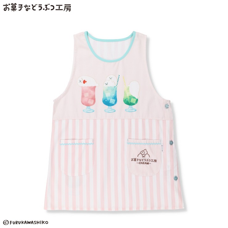 お菓子をモチーフにした可愛らしいキャラクターたち『お菓子などうぶつ工房』のエプロン。