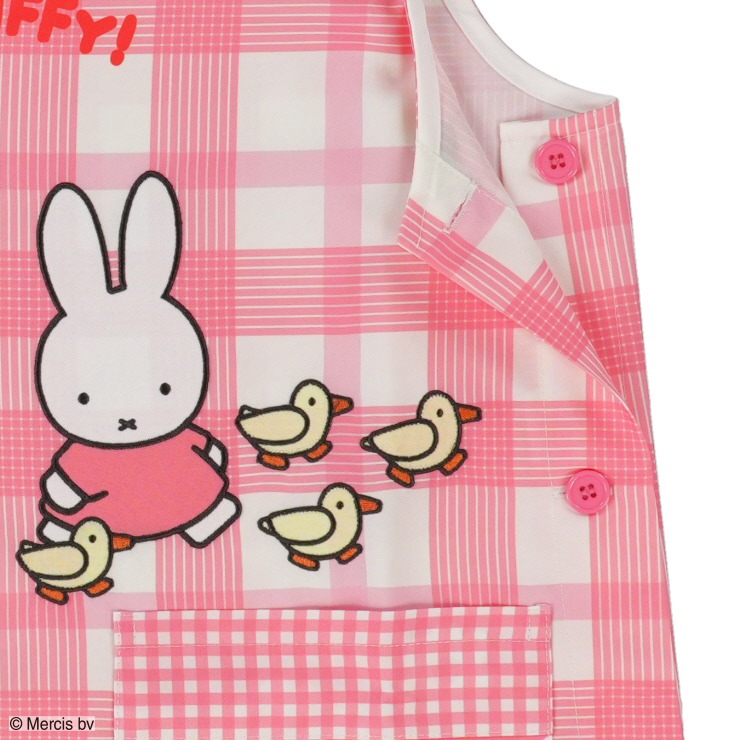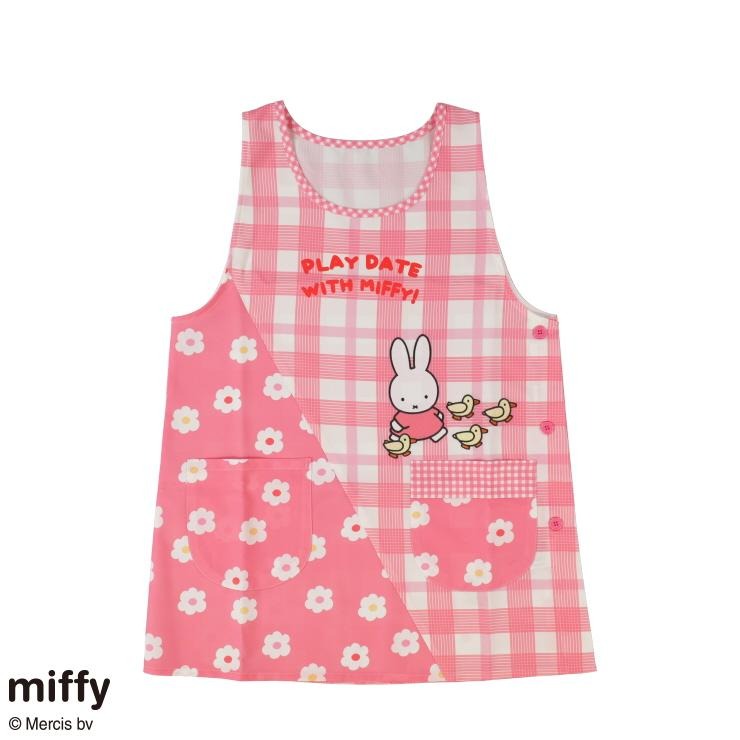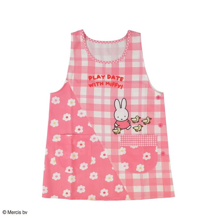 『ミッフィー』のプリントにチェック柄と花ドット柄の切り替えがおしゃれなエプロン。