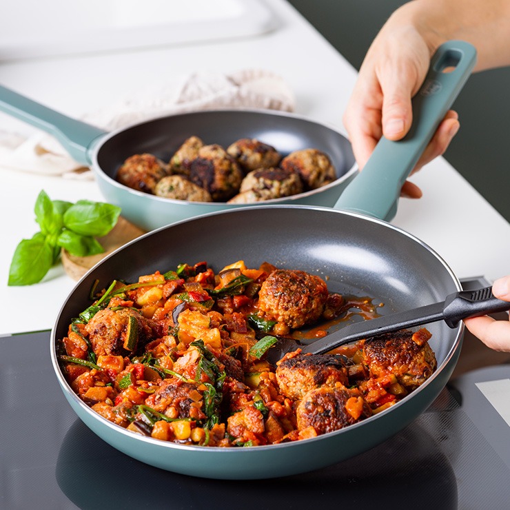 良質な食材を選ぶように、カラダにやさしい調理器具を選ぼう。PFAS FREEのグリーンシェフに、トーンズコレクションが仲間入り。樹脂ハンドルのため軽量で使いやすく、柔らかな色合いで落ち着いたデザインが特長です。コーティングには鉛やカドミウム、PFASを使用しない、セラミックコーティングを採用。こびりつきにくく、安心安全な素材を使用しています。