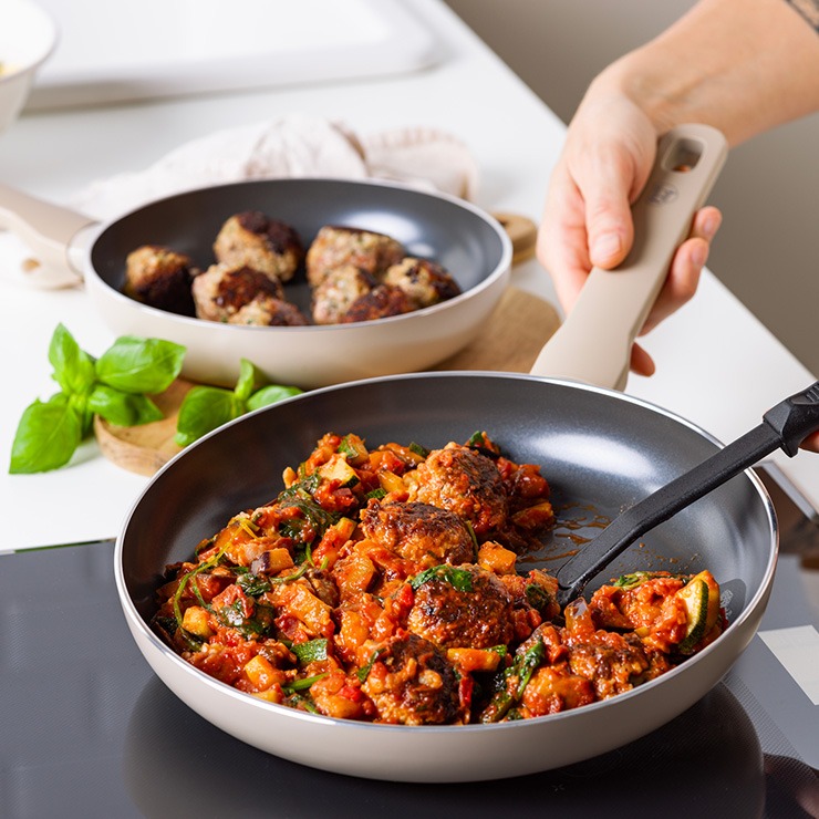 良質な食材を選ぶように、カラダにやさしい調理器具を選ぼう。PFAS FREEのグリーンシェフに、トーンズコレクションが仲間入り。樹脂ハンドルのため軽量で使いやすく、柔らかな色合いで落ち着いたデザインが特長です。コーティングには鉛やカドミウム、PFASを使用しない、セラミックコーティングを採用。こびりつきにくく、安心安全な素材を使用しています。