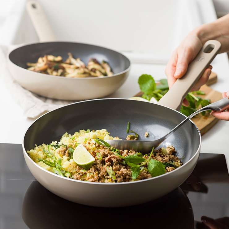 良質な食材を選ぶように、カラダにやさしい調理器具を選ぼう。PFAS FREEのグリーンシェフに、トーンズコレクションが仲間入り。樹脂ハンドルのため軽量で使いやすく、柔らかな色合いで落ち着いたデザインが特長です。コーティングには鉛やカドミウム、PFASを使用しない、セラミックコーティングを採用。こびりつきにくく、安心安全な素材を使用しています。