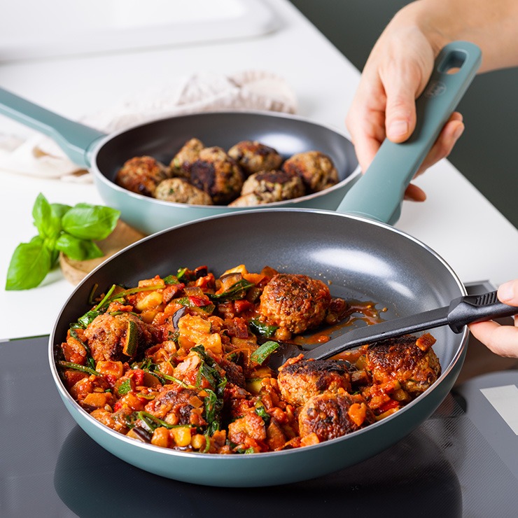 良質な食材を選ぶように、カラダにやさしい調理器具を選ぼう。PFAS FREEのグリーンシェフに、トーンズコレクションが仲間入り。樹脂ハンドルのため軽量で使いやすく、柔らかな色合いで落ち着いたデザインが特長です。コーティングには鉛やカドミウム、PFASを使用しない、セラミックコーティングを採用。こびりつきにくく、安心安全な素材を使用しています。